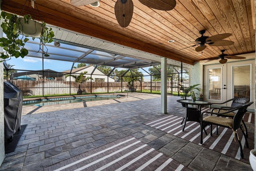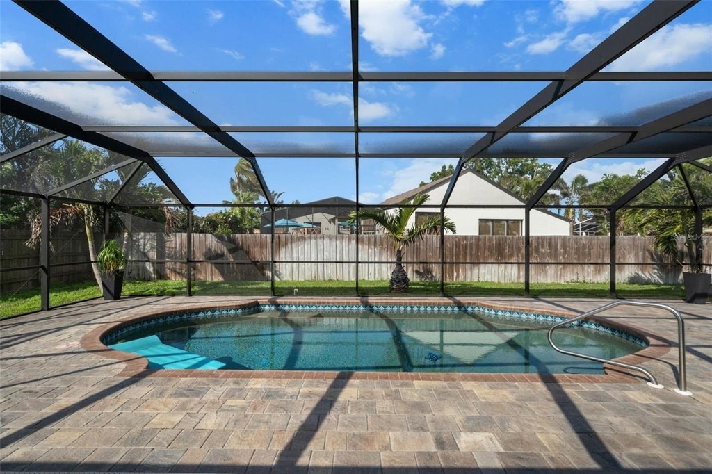 Discover your dream home in the highly sought-after Pinebrook South community, just minutes from Venice and Nokomis beaches, Venice Island, shopping, dining, I-75, and nature preserves. This beautifully updated 2-bedroom, 2-bath home with a bonus room, perfect for a home office or den, offers the ultimate Florida lifestyle! Step inside to an elegant open-concept living space with soaring cathedral ceilings and a wood-burning fireplace in pristine condition. The custom Craftsmaid kitchen is a chef's dream, boasting soft-close cabinetry, pull-out drawer organizers, a spacious island with Quartzite countertops offering additional seating, and all-new appliances. The adjacent walk-in pantry/laundry room features updated tile and a stylish coffee bar, making mornings effortless. Luxury flows throughout with new flooring, abundant recessed lighting, and upgraded hardware on every door. The spacious primary and guest bedrooms both offer walk-in closets, while the bonus room provides endless possibilities. Outdoor living is just as spectacular! The expansive pool lanai, extended in 2021, is partially covered featuring a beautiful yellow pine ceiling and a new pool cage, perfect for year-round relaxation. The resurfaced solar-heated pool with a new pump & filter in 2022 is your private retreat, while the front porch with a charming wood ceiling and new screens offers another inviting space to unwind. Additional key upgrades include a new roof, fresh interior and exterior paint, new landscaping, and a full privacy fence. Enjoy countless community amenities including a boat ramp, kayak and canoe launch and storage, fishing dock, sprawling community pool, and a spacious clubhouse featuring pool tables, games, a full kitchen and entertainment areas. Canal access leads you straight to Donna Bay, the Jetties, and the Gulf of Mexico! Bring your canoe or kayak and start exploring all of what Florida living has to offer. This home is a rare find. Schedule your private showing today!